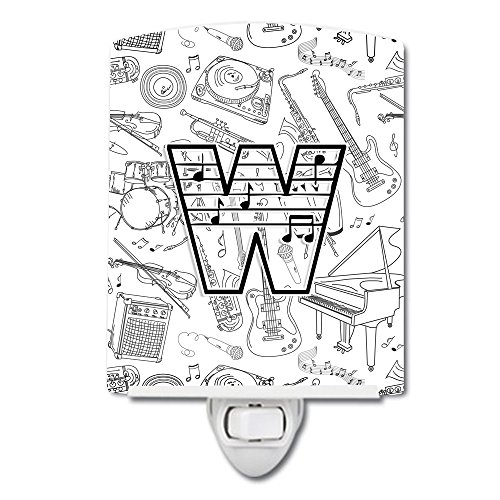 Caroline's Treasures W Musical Note Letters Ceramic Night Light, 6 x 4", Multicolor
