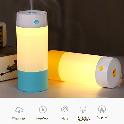 Studio : Wonton Publisher : Wonton Binding : Kitchen Product Description Features: Potable humidifiers LED night light Whisper-quiet operation Auto shutoff for safety Helps with dry, chapped skin, chapped lips and dry sinuses Works with ordinary tap water Notes: You can use this product as a cool mist humidifier but not as the aromatherapy essential oil diffuser. To prolong the lifetime of the item, please keep it dry and clean when storing. If the water added over max line, the mist will be very thin(less water, more mist). If the ultrasonic wave chip was polluted, it may cause error action or default. Please don't touch the internal ultrasonic wave vibration board inside of the water tank directly with your hands. Filter Replacement: 1.Rotate 90 degrees clockwise 2.Draw the filter bar and replace the filter 3.Pay attention to the sping in bottom when replacing Specifications: Container Capacity: 250 ml Material: ABS PP silica gel Input Voltage: DC 5 V Rated Power: 3 W Operating Time:around 6 hours Size: 6cm (Φ) x 15cm (H) Package Includes: 1 x Mist Humidifier 1 x USB Cable 1 x User Manual 2 x Filter