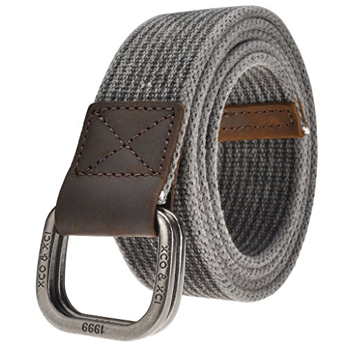 -. Title : Ayliss Men's Double D-Ring Canvas Belt Genuine Leather Trimming Casual Belt