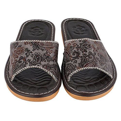 -. Binding : Apparel -. Brand : Haisum -. Department : mens -. Feature : MATERIAL: Leather+ Rubber. / COZY and COMFORTABLE: The men leather slippers are very comfortable and handsome to wear at your house all the year round, on the ceramic tile or on the wood floor. / ANTI-SLIP RUBBER: Water-proof non-skid rubber soles features good wear-resistance, light, not easily deform and no scuff to the floor. / OCCASION:Suits the all family members; A high quality summer indoor slippers for living room and bedroom. / STANDARD SIZE: Feet breadth please choose larger one size. -. Model : 8806-M -. ProductGroup : Shoes -. ProductTypeName : SHOES -. Title : Haisum Men's Summer Floral Print Slipper Sewing Anti-skid Outdoor Indoor Open Toe Sandals