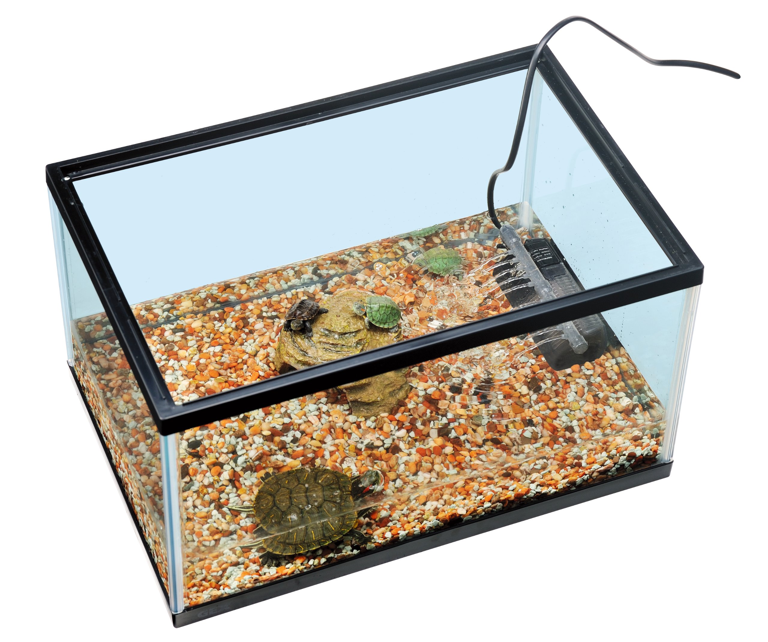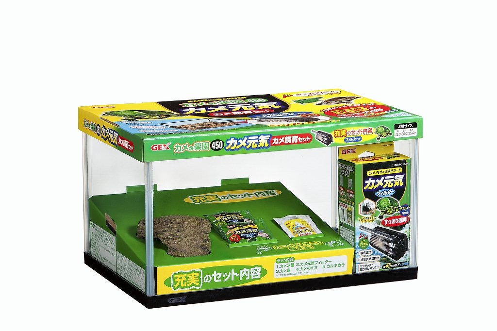 Aquarium: glass, PS / filter: ABS, PP / Kame Island: polyresin