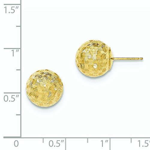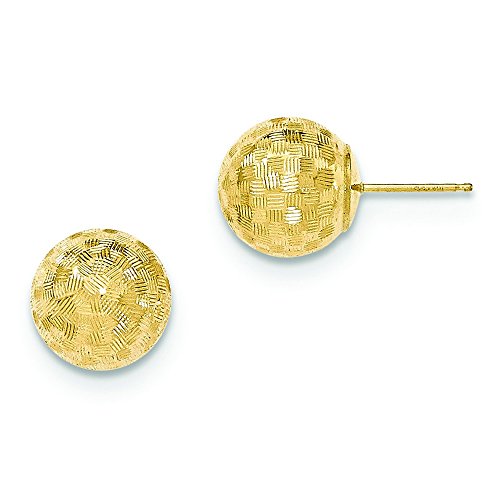 14k Yellow Gold Round 10mm Checkerboard Dimaond Cut Ball Earrings - in 14k Yellow Gold - JewelryWeb Style: QTE290391Y - FREE gift-ready jewelry box