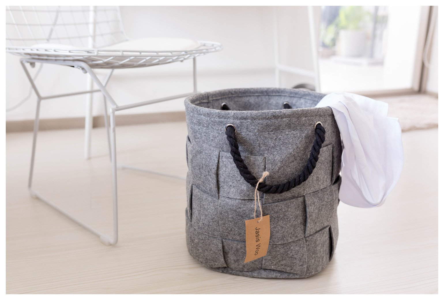 Jasis Woo Fall new article storage basket Round type storage basket felt foldable handle included (32 x 34 cm)