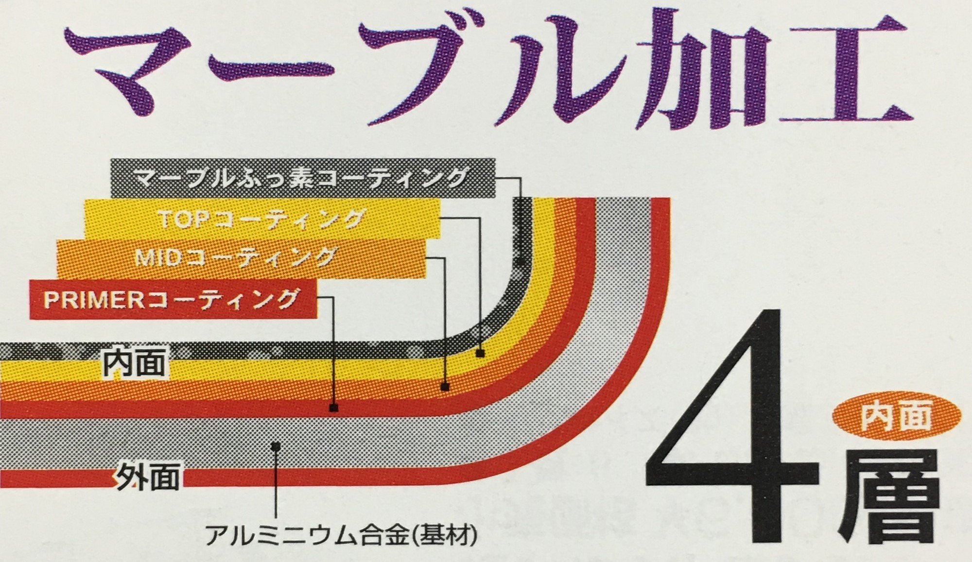 4 inner layer marble fluoride coating that is far less sticky than conventional fluorine processing