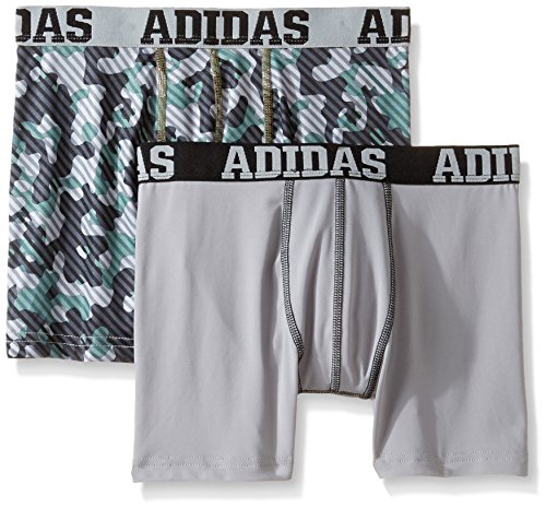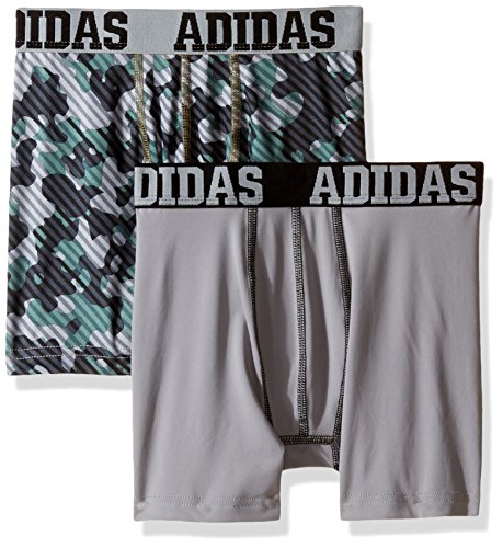 adidas Boys Sport Performance Climalite Boxer Brief Underwear (2 Pack), Print Light Onyx/Grey/Black, X-Large
