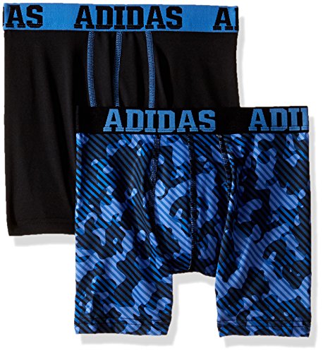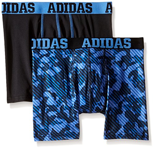 adidas Boys Sport Performance Climalite Boxer Brief Underwear (2 Pack), Blue/Black/Black/Ray Blue, X-Large