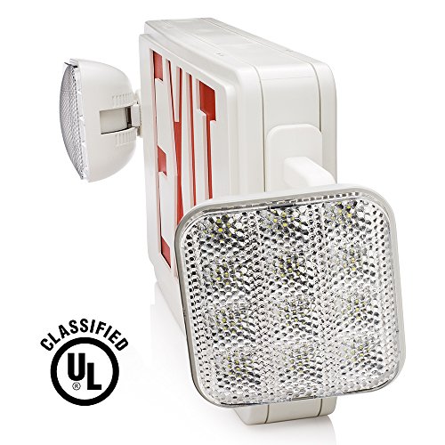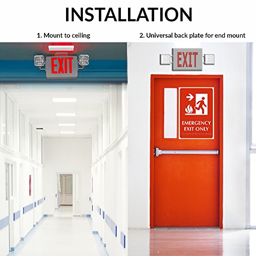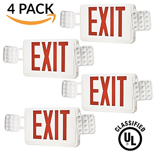 Sunco Lighting 4 PACK - UL Listed- Single/Double Face LED Combo Emergency EXIT Sign with 2 Head Lights and Back Up Batteries- US Standard Red Letter Emergency Exit Light