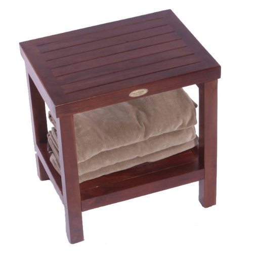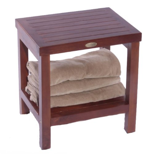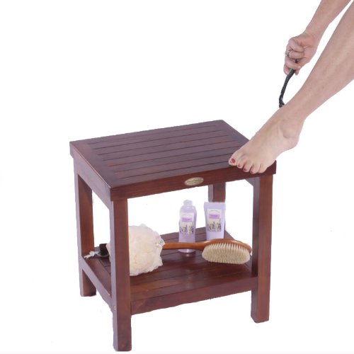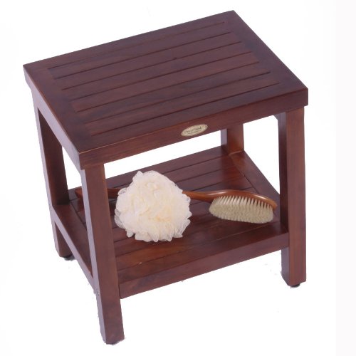 Classic 18" Teak Shower Bench With Shelf- Armless Open Back