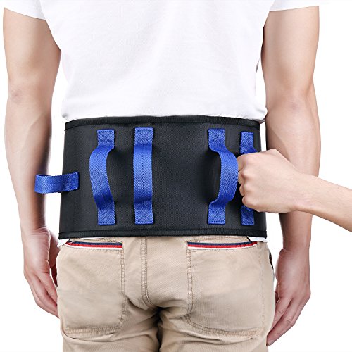 OasisSpace Transfer Belt for Patient Care with 6 Strong Handles Quick Release Metal Buckle The Transfer Belt allows you to easily transport patients from wheel chair/ walker to the car or bed etc. The tough metal locking teeth keep belt securely in place to create a strong hold for added safety (handling hariatrics), especially when patient is going up and down stairs. Made of quality material: Non-Slip Soft Padded; Great for elderly tender skin and sides
