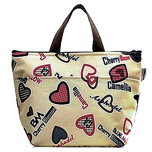 Eforstore Waterproof Picnic Lunch Bag Case Tote Reusable Bags Insulated Cooler Travel Zipper Organizer Box for Women Men Kids Girls Boys Adults (Love...