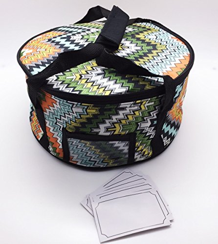 Carrier size is 10 inches round and 5 inches tall. Tote has ID Window and includes 10 placement cards.