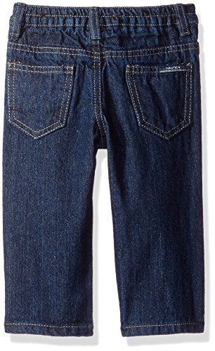 Nautica three piece set which includes a woven button down shirt, a quarter button sweater and denim pants.