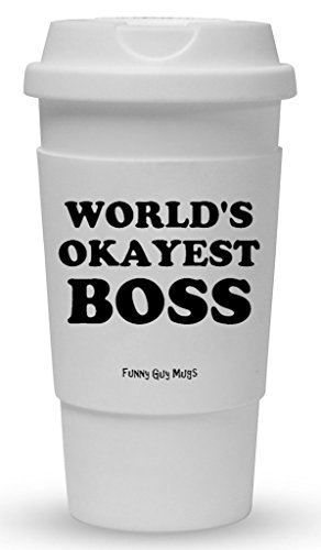 Funny Guy Mugs World's Okayest Boss Travel Tumbler With Removable Insulated Silicone Sleeve, White, 16-Ounce