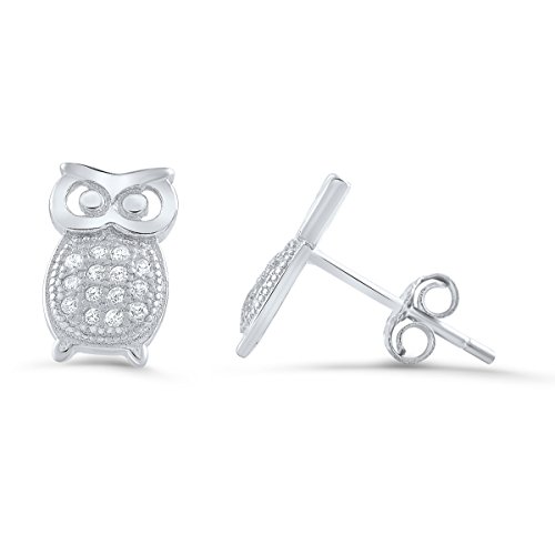 Sterling Silver Cz Owl Stud Earrings - 10mm