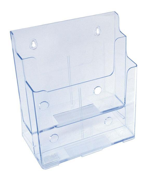 インジェクション一体成型なのでデザインが美しく丈夫。各種パンフレットやチラシ・カタログなどの展示保管に最適です。背面にフック用の穴があるので壁掛け用としてもご利用できます。