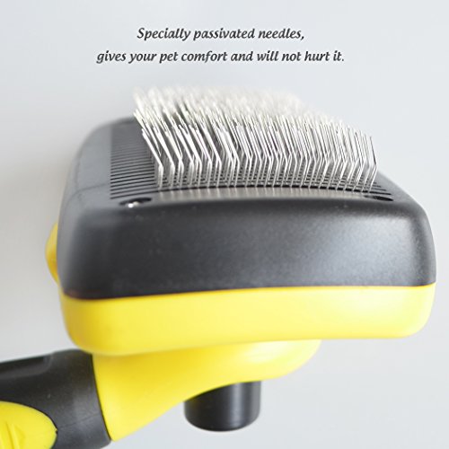 It is very necessary for you to get a Pet Deshedding Brush if you have a dog or cat or other pets.Sometimes you are busy and do not have much time and this Pet Grooming Tool can help you a lot. It is Self cleaning and very easy to use,strong and durable,OK either for a pet with long or short hari,thick or curly.It even increases your pet's blood circulation.Feature