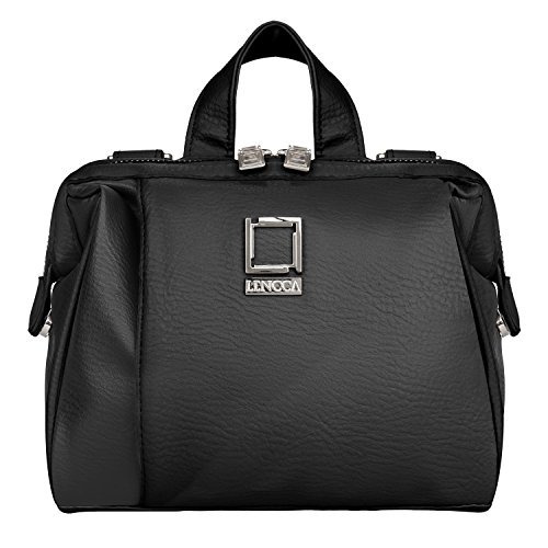 The back side of the bag has a fully zippered compartment with two padded mesh organizer pockets and room for plenty more within. At the top of the bag are two metal clasps that connect the removable messenger strap, and a sturdy handle which is soft and comfortable to the touch. 0