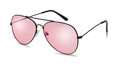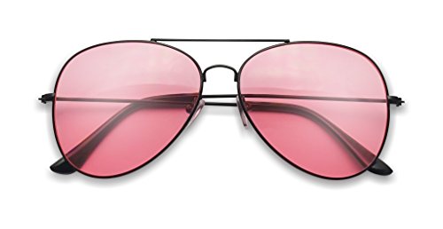 Classic Black Metal Frame Aviator Style Sunglasses W/ Retro Colored Lens