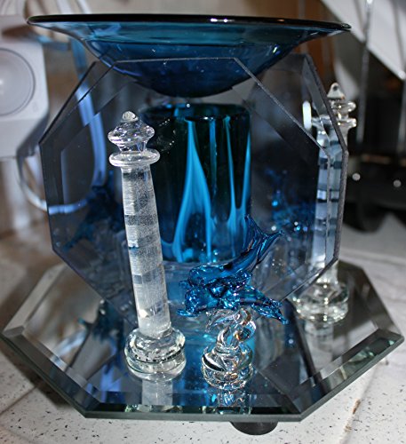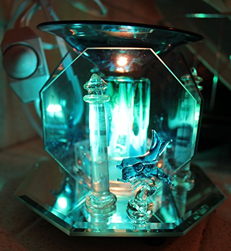ELECTRIC OIL WARMER TART BURNER 2 JUMPING DOLPHINS AND LIGHTHOUSE, 3 SIDED MIRROR, DARK BLUE