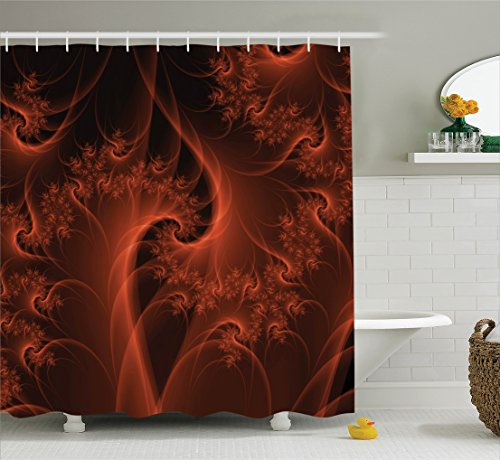 Burnt Orange Decor Shower Curtain Set By Ambesonne, Digital Fractal Image With Swirling Turning Moving Floral Lines Motion Modern Graphic, Bathroom Accessories, 69W X 70L Inches, Orange