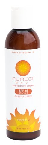 Our purest Maui chemical free SPF formulas provide both UVA and UVB protection and are infused with antioxidants and nutrients to help prevent Sun damage while keeping the skin well hydrated. . About the product . Organic 100% chemical free sunscreen . 100% reef safe . Contains all natural organic ingredients . Physical sunscreen ingredients all natural chemical free micro Nised zinc and titanium dioxide .water resistant for up to 80 minutes without reapplyingFeature
