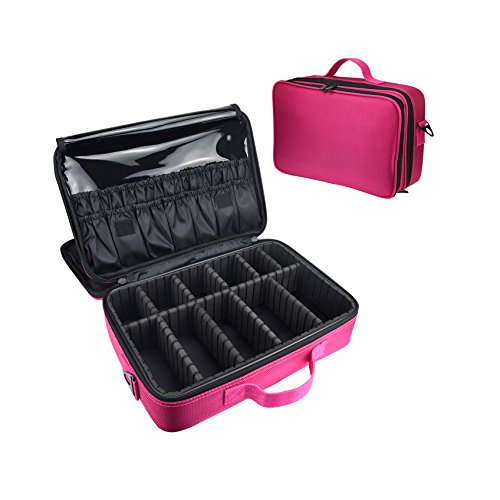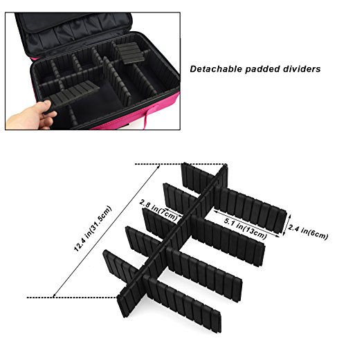 - Adjustable padded dividers, it expands to reveal five 2.5 x 5.1 x 2.4 inch compartment, six 2.1 x 2.8 x 2.4 inch (LxWxH)small compartment.you can design the compartments according to your demand, DIY individual cosmetic organizer.