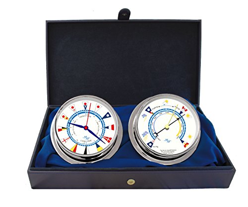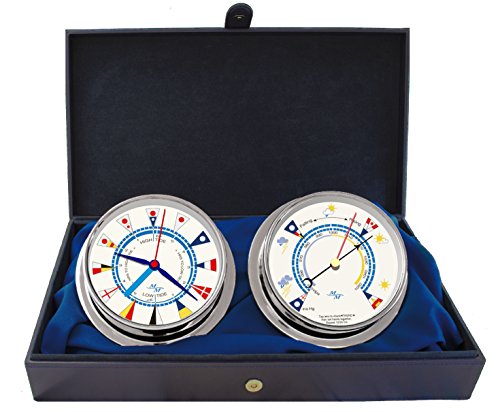 Studio : Master-Mariner Publisher : Master-Mariner Product Description As advertised in the following publications: ? Sail Magazine ? Yachting Magazine ? Florida Boating ? 48Degrees North Magazine ? Latitude 38 ? Sailing ? Gulf Coast Magazine ~ Master-Mariner is pleased to present top-quality nautical-instrument gift sets at an affordable price. If you have ever considered buying a pair of brass instruments for your boat, office or home only to be startled by how much a single nautical clock in a brass case costs, the Master Mariner Gift Set Collection will come as a welcome change of pace. ~ We at Master-Mariner have been selling clocks and weather instruments to the marine industry for over forty years and have seen how traditional methods of design and distribution have not kept pace with the means to keep prices affordable. In response we have applied several state of the art processes and unique design resulting in 6 luxury Gift Sets. As boat owners ourselves, we are sympathetic to our fellow shipmates' complaints that marine instruments are not priced for the average boater. Introducing the Master-Mariner Gift Set Collection! ~ Find all six on Amazon! ~ ? Designed and Tested in the United Kingdom ? Metal cases of 430 Stainless Steel .70" thickness ? Refractory PVD Nitride / Vacuum Metalized Lifetime Mirror Finish ? Barigo GMBH Barometer Mechanisms ? Trintec Brand Tide/Time Mechanisms ? German Thermometer and Hygrometers Mechanisms ? 4-mm beveled glass lenses ? Suitable for indoor or sheltered outdoor use ? Up to a hefty 22 ounces each x 5 7/8" diameter each instrument 0