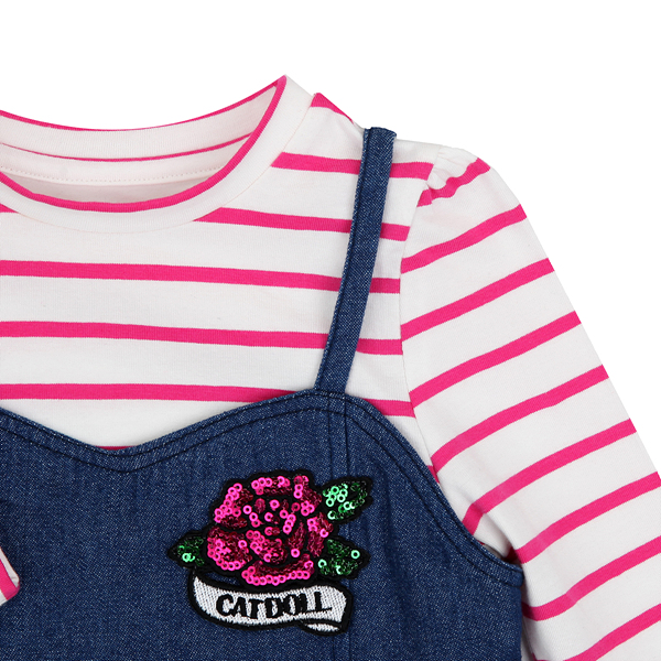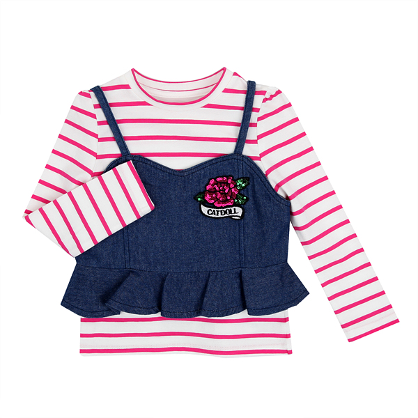 상세설명-면 티셔츠와 데님탑을 분리해서 입을수있어서 실용적으로 입을수있으며 귀엽고 깜찍한 느낌입니다