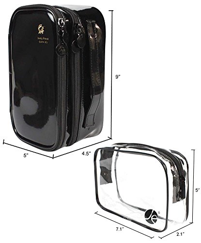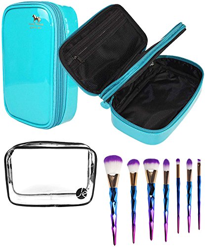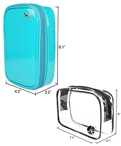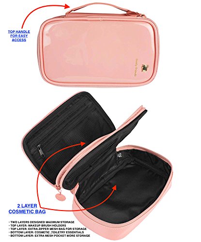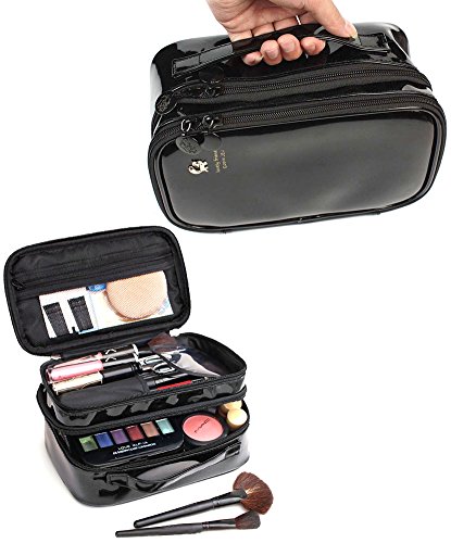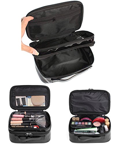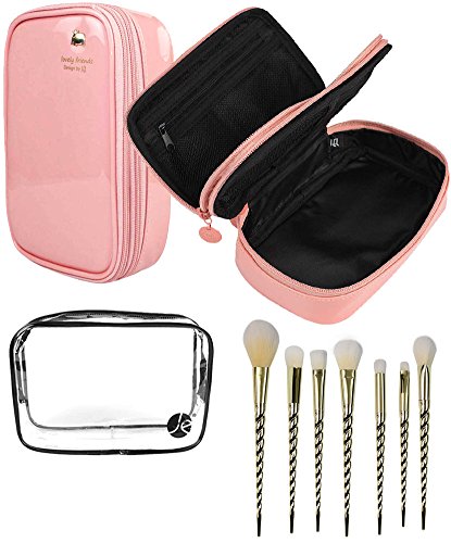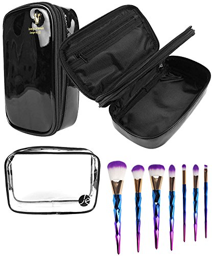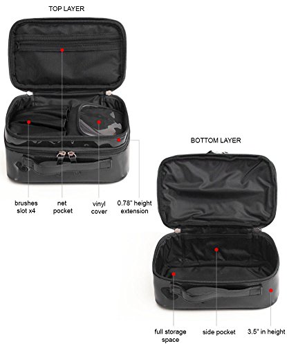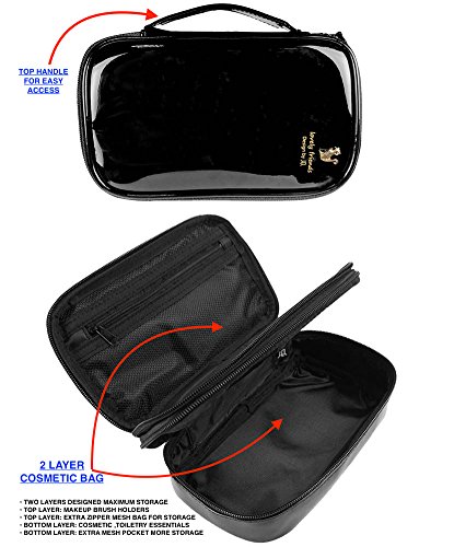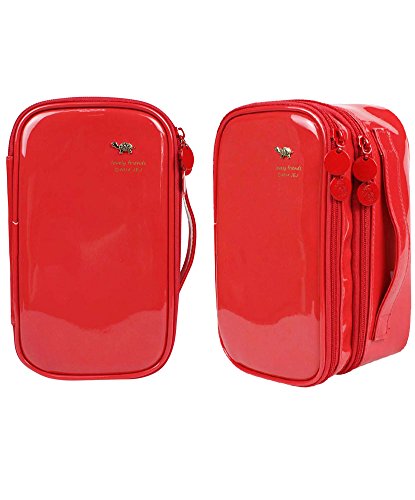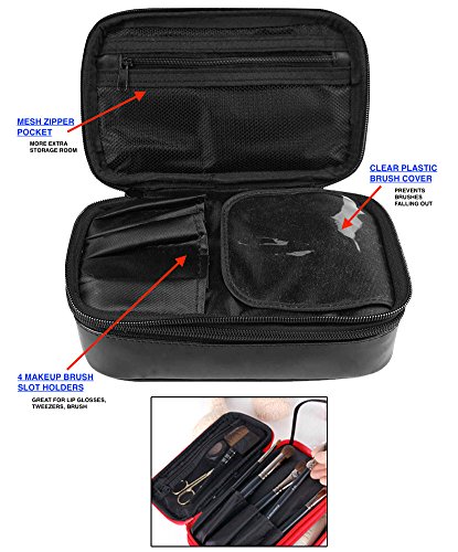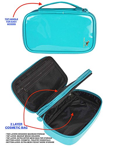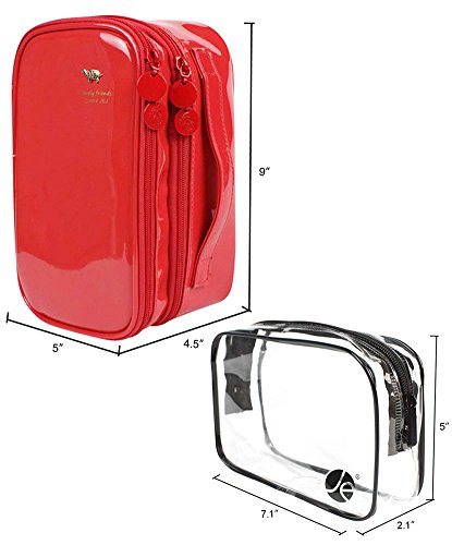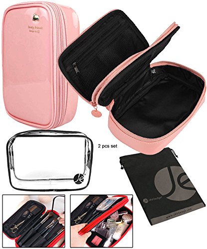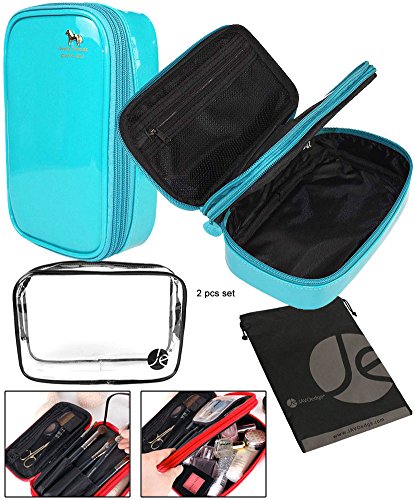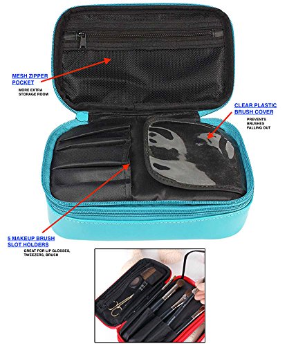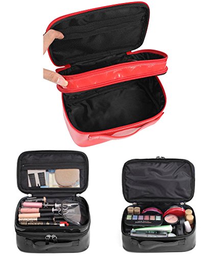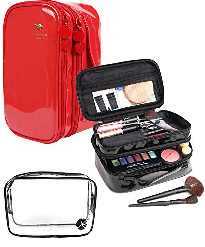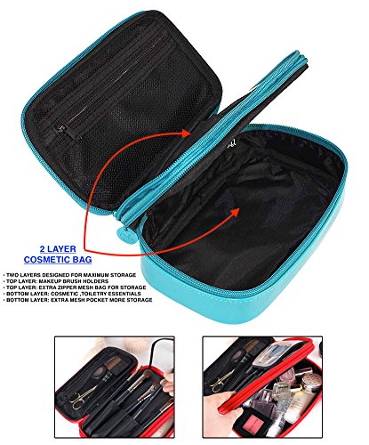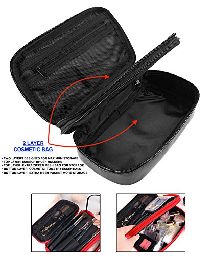 | JAVOedge (2 PCS SET) Bold Colored 2 Layers and Double Zipper Cosmetic Makeup Brush Travel Bag W... |