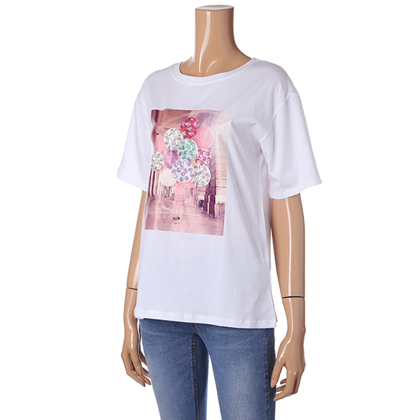 25인치 기장의 풍선 프린트 저지 티셔츠 입니다.