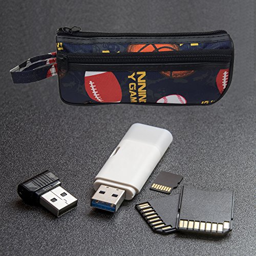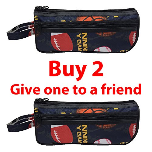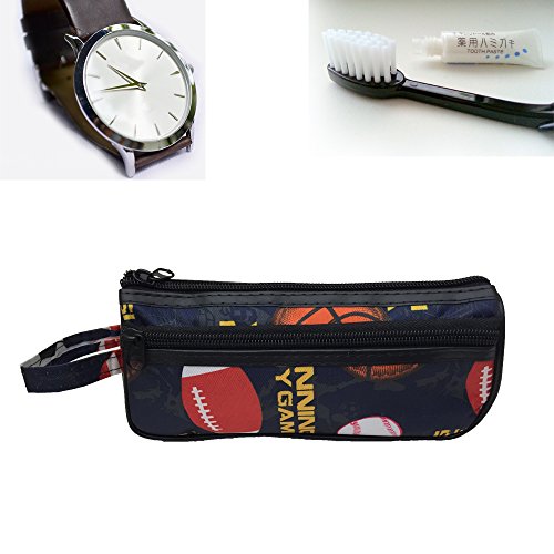 - SMALL SPORT PATTERN TOILETRY TRAVEL CASE: Multiple Use Travel Zip Case in a thin, picture photo rectangular size designed for arts and craft supplies (pencils, paintbrush, seamstress sewing scissors, embroidery thread), cosmetics, thin toiletry items, jewelry, or electronic accessories.