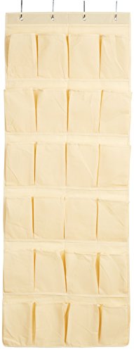 -. Feature : Easily hangs over most doors / Fits 24 shoes; utilizes unused space / Material: sturdy polyester canvas / Pocket width: 5 inches; includes 4 over-the-door hooks / Dimensions: width: 21.75"; Height: 58"