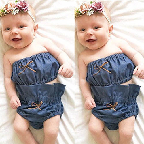 -. Title : BANGELY Baby Girls' Fashion Denim Off-shoulder Tank Tops Shorts Sunsuit Clothes Set