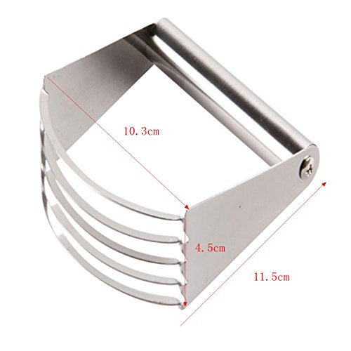This pastry blender with blades quickly cut butter or margarine into dry ingredients such as flour, sugar or baking powder, combining a set of wet and dry ingredients seamlessly.