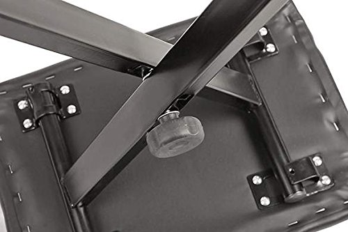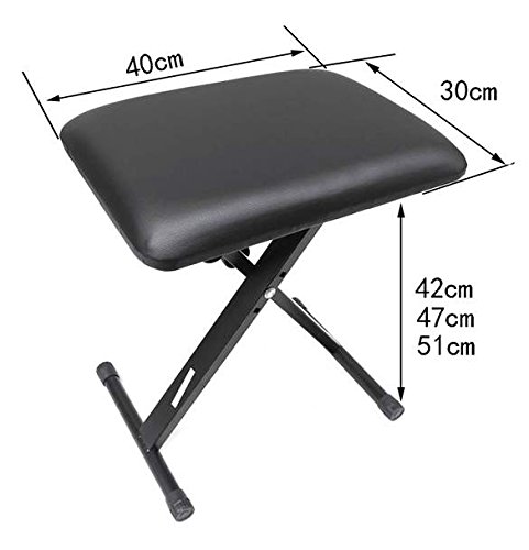 -. Feature : Color: Black / Large and comfortable padding: 15.8"L x 11.7"W / Non-slip rubber ends on legs / Collapsible for easy storage / Package Content: 1x Piano Bench