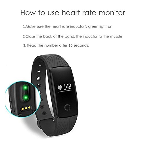 -. Feature : ❤Activity Tracker - step counting, calories burning and distance measuring, comprehensively collect your and storage excise data (for the latest 7 days), efficiently help you manage your sports activity. / ❤Message Push - the bracelet will remind you by vibration for incoming calls or messages, support APPs such as Facebook, Twitter, Instagram, WhatsApp, Skype, Wechat, Email, SMS, etc. / ❤Heart Rate Monitor - 24-hour real time (manual control) measure your heart rate, all-round protection,as a sports exercise and weight loss guidance,but can't as professional medical heart rate monitor chip. / ❤Technical Design - 0.49" OLED screen will automatically light up when you turn over hand, 5.5" - 7.6" adjustable silicon band fit for different wrist size, IP65 daily waterproof design. / ❤Other Functions - Sleep monitor, Gesture-sensor control, Anti-lost, Camera remote control, Sedentary reminder, Vibration clock alarm, Multi-language.