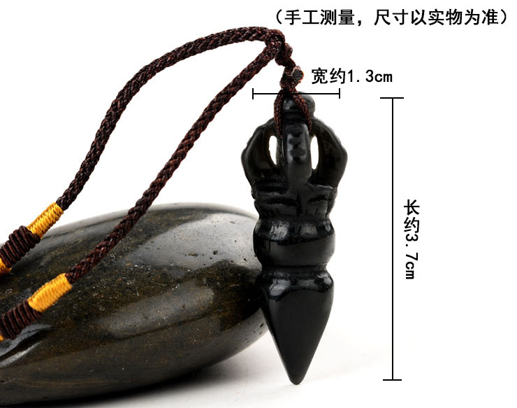 【黑曜石简介】 黑曜石是一种天然的火山琉璃,火山爆发时的高热溶解了附近的琉璃物质,并于急速冷却时将其中细小的水分子及空气凝聚其中,使得将黑曜石刻成凸面时,因其中的水分子及空气经过光线折射而形成同心圆状的彩虹圈,有些只有一颗彩虹圈称单眼彩虹黑曜石,有些于相对位置有两颗彩虹圈称双眼黑曜石。 黑曜石通常呈黑色,但是也有可见棕色、灰色和少量的红色、蓝色甚至绿色的材料的黑曜石。黑曜石有可能是全部单色、或有条纹、或有斑点。 黑曜石属于墨西哥国石,严格的说,“国石”大多数都是珍贵的矿石、世间罕见的宝石,才有资格做“国石”,“国石”也寄托了国家的文化诉求和与表达。 黑曜石也被称为“亚帕奇之泪”,在印第安传说中,部落内的一支队伍中了敌人的埋伏,寡不敌众,全军覆没,噩耗传来,家人们痛哭的眼泪,撒落到地上,就变成了一颗颗黑色的小石头,“亚帕奇之泪”因此得名。 【金刚杵简介】 在佛教密宗中,金刚杵象征着所向无敌、无坚不摧的智慧和真如佛性,它可以断除各种烦恼、摧毁形形色色障碍修道的恶魔,为密教诸尊之持物或瑜伽士修道之法器。 曼荼罗海会之金刚部诸尊皆持金刚杵。真言行者亦常携行,盖以此杵象征如来金刚智,用以破除愚痴妄想之内魔与外道诸魔障。“金刚杵”一词,原本是帝释的一种“电光”的称呼。不过,平常都用于称谓祂所用的武器。同时对于诸神力士所持用的一种器仗,也称作“金刚杵”。在后 来的密教中,采取它寓有“摧毁敌者”的间意义,遂把诸尊圣神所执持的某些器仗,都称呼为“金刚杵”了。