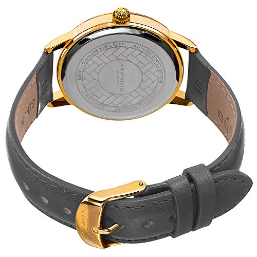 -. Title : Akribos XXIV Women's Gold-Tone Mother-of-Pearl Mosaic Dial with Grey Glove Style Genuine Leather Strap Watch AK906GY