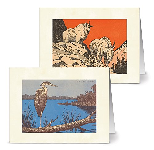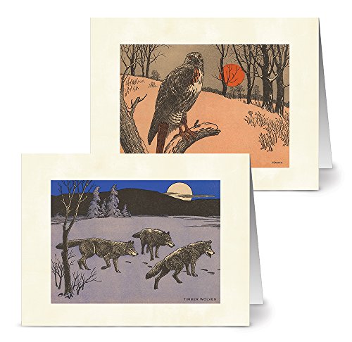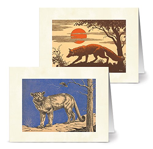 Vintage Wildlife - 36 Note Cards - 12 Designs - Blank Cards - Off-White Ivory Envelopes Included