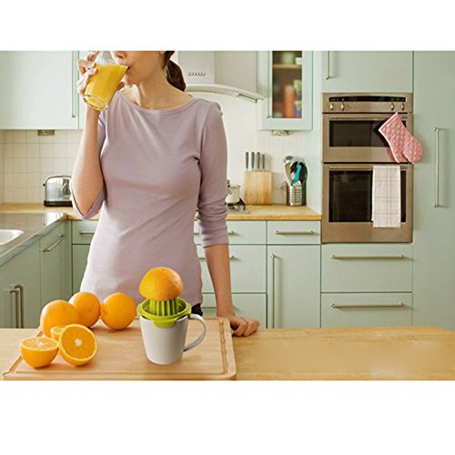 -. Feature : 100% satisfaction guaranteed. / Making the kitchen fun for all ages. / Product size: 12.3x14.5x10.2cm. / Hand (manual) juicer, Plastic construction. / With juice, grinding, dolly three big functions.