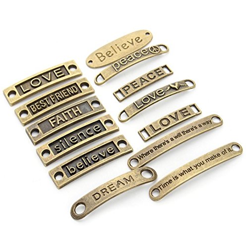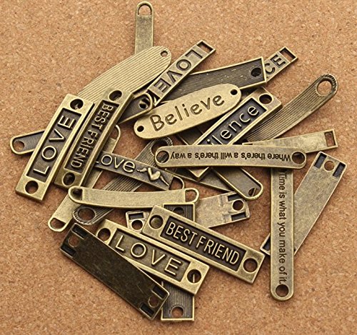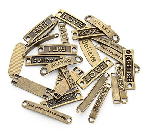 20 Pc Inspirational Message Connector Charms, Antique (Bronze Tone)