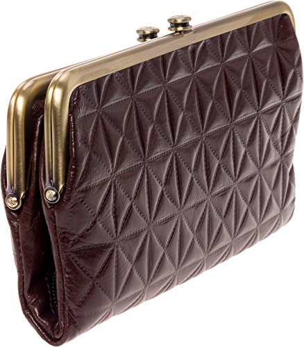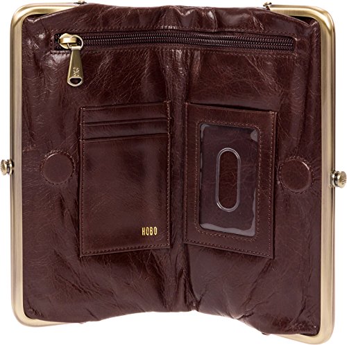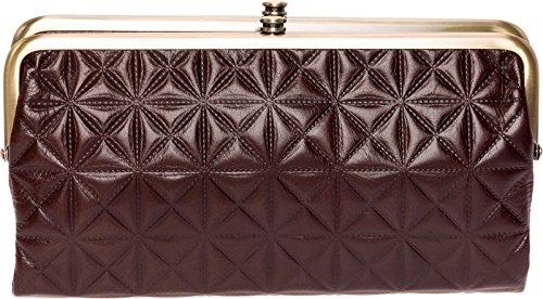Seamlessly mixing style and function, this Quilted Embossed Lauren Leather Clutch Wallet by Hobo transitions perfectly from day to night! This bifold wallet is made from top-grain genuine leather that features an eye-catching, embossed quilted pattern. The interior of this clutch contains 3 card slots, 1 clear ID window, and a roomy zippered pocket that's kept secure by a magnetic closure. One clasp compartment features 2 bill compartments & 6 card slots while the other contains a zipper pocket and space for your cell phone. The abundance of storage compartments gives you plenty of options to keep your essentials organized. Measures 8.75" x 5" x 2", folds out to 9.25" wide.Feature