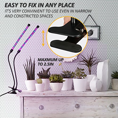 -. Title : Aetel Timing Function Dual Head Led Grow Light 12W Dimmable 5 Levels with 360 Degree Flexible Gooseneck for Indoor Plants Small Growing Tent Home Hydroponic Garden Greenhouse Office