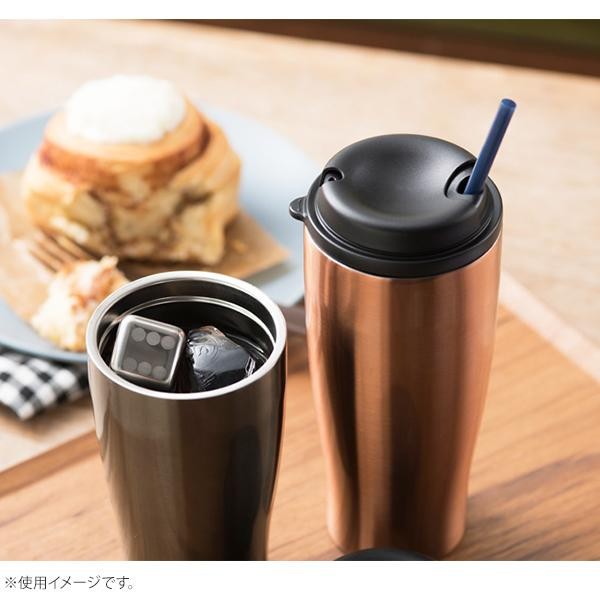 タンブラーは車のカップホルダーに収まるサイズです。蓋はスライド式なので飲み口の開閉も簡単です。アイスキューブは通常の氷のように溶けないので、飲み物が薄くなりません。コーヒーやお茶など、飲み物を最後まで楽しむことができます。 |