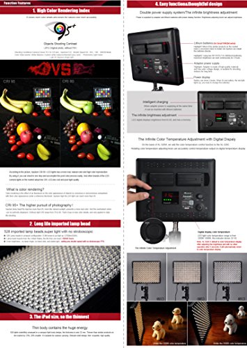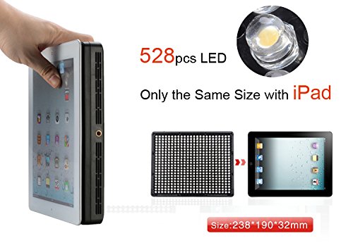 スリムデザイン (iPadとほぼ同じ); 万能なランプブラケット; 手持ち用ライト。