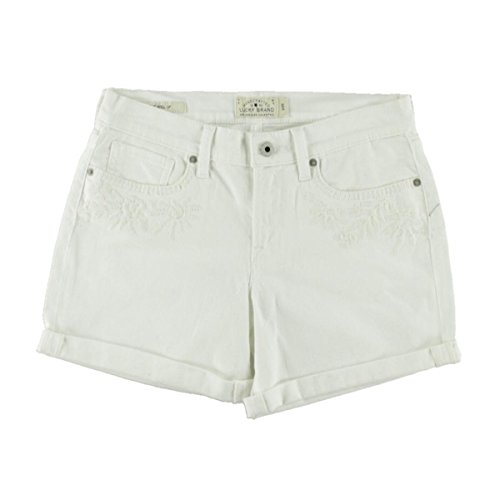 Five-pocket short featuring tonal embroidery at front and rolled cuffs