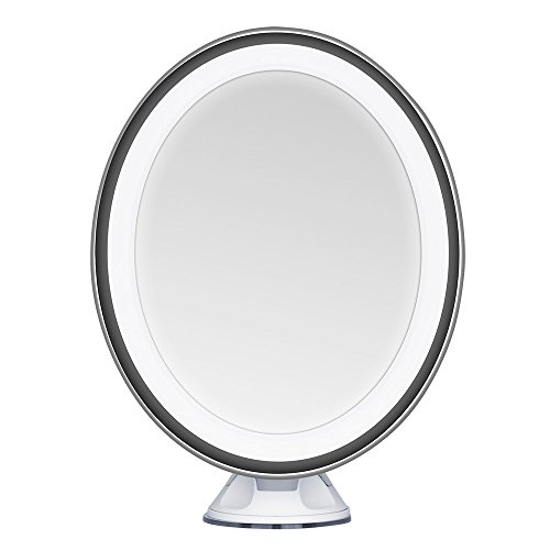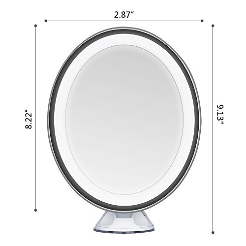 ★Cordless, portable, special oval shaped travel mirror, operated with 4 AAA Batteries (not included),when folded, takes up less than 1/2 square foot of space, which makes it a perfect travel mirror too.(Only 11.3oz without batteries)