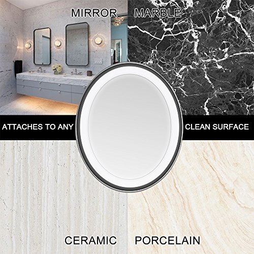 ★ Two-in-one use,this mirror can stick to a clean, flat and smooth surface such as ceramic, marble, acrylic, porcelain, enamel, and other mirrors or stand on its own as a tabletop/countertop mirror. Ideal magnifying mirror for home and travel.