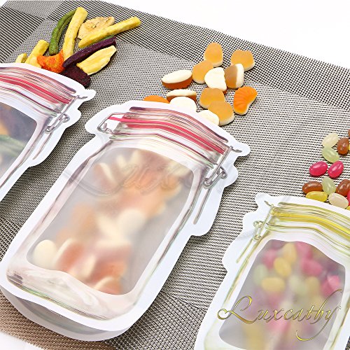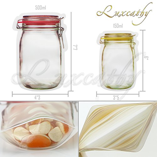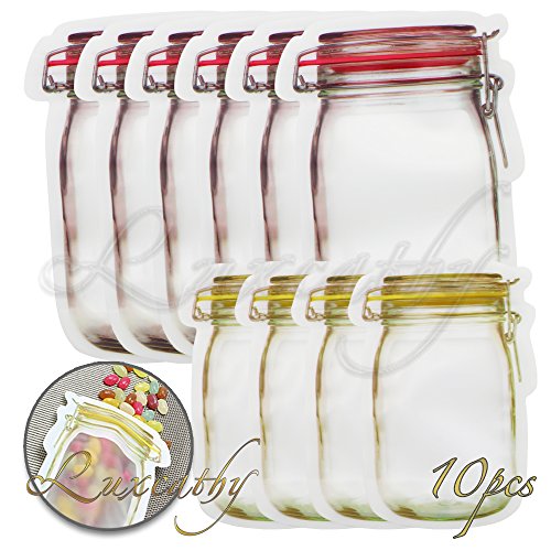 Luxcathy 10 Counts Mason Jar Pattern Food Saver Storage Bags Set ( 500ml x 6 + 150ml x 4) - Airtight , Zipper, Portable