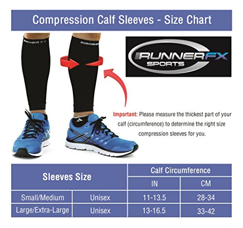 Calf Compression Sleeve - Runner FX Sports Men and Women's Leg Compression Socks-Shin Splint & Calf Pain Relief - Calf Guard for Running, Walking, Cycling, Travel - Relieves Leg Cramps